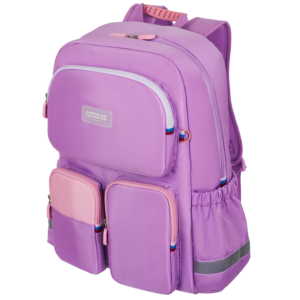 - Яркий и летний дизайн: Рюкзак представлен в ярком фиолетовом цвете, который придает ему летнюю игривость и радостное настроение.