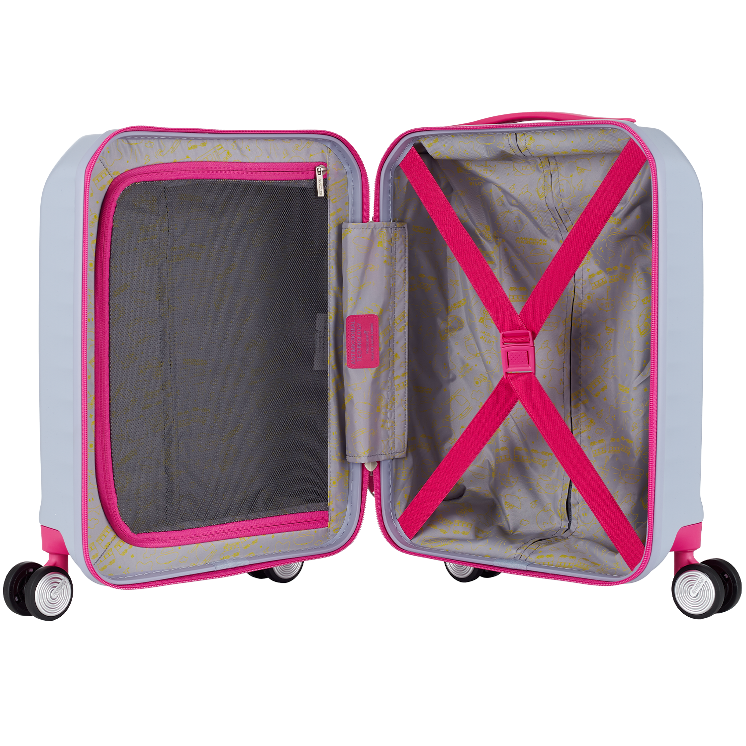 Супер-маневренность: Система из четырёх колес Spinner обеспечивает невероятную лёгкость движения. Чемоданчик послушно катится в любом направлении, помогая малышу без усилий справляться с ним.