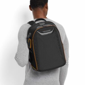 Этот рюкзак, выглядящий так, будто он едет со скоростью 100 миль в час и при этом стоит совершенно неподвижно, повторяет аэродинамический дизайн автомобилей. Карбоновое волокно CX6 и акценты McLaren’s Papaya подчеркивают влияние суперкара.