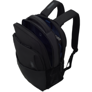 - Современный дизайн: Рюкзак представлен в классическом черном цвете, который придает ему элегантный и универсальный вид, идеально подходящий для любого стиля.